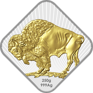 • A .999 fine silver 25 g American Bison and a 250 g American Bison, showcasing one of America’s most iconic national symbols.